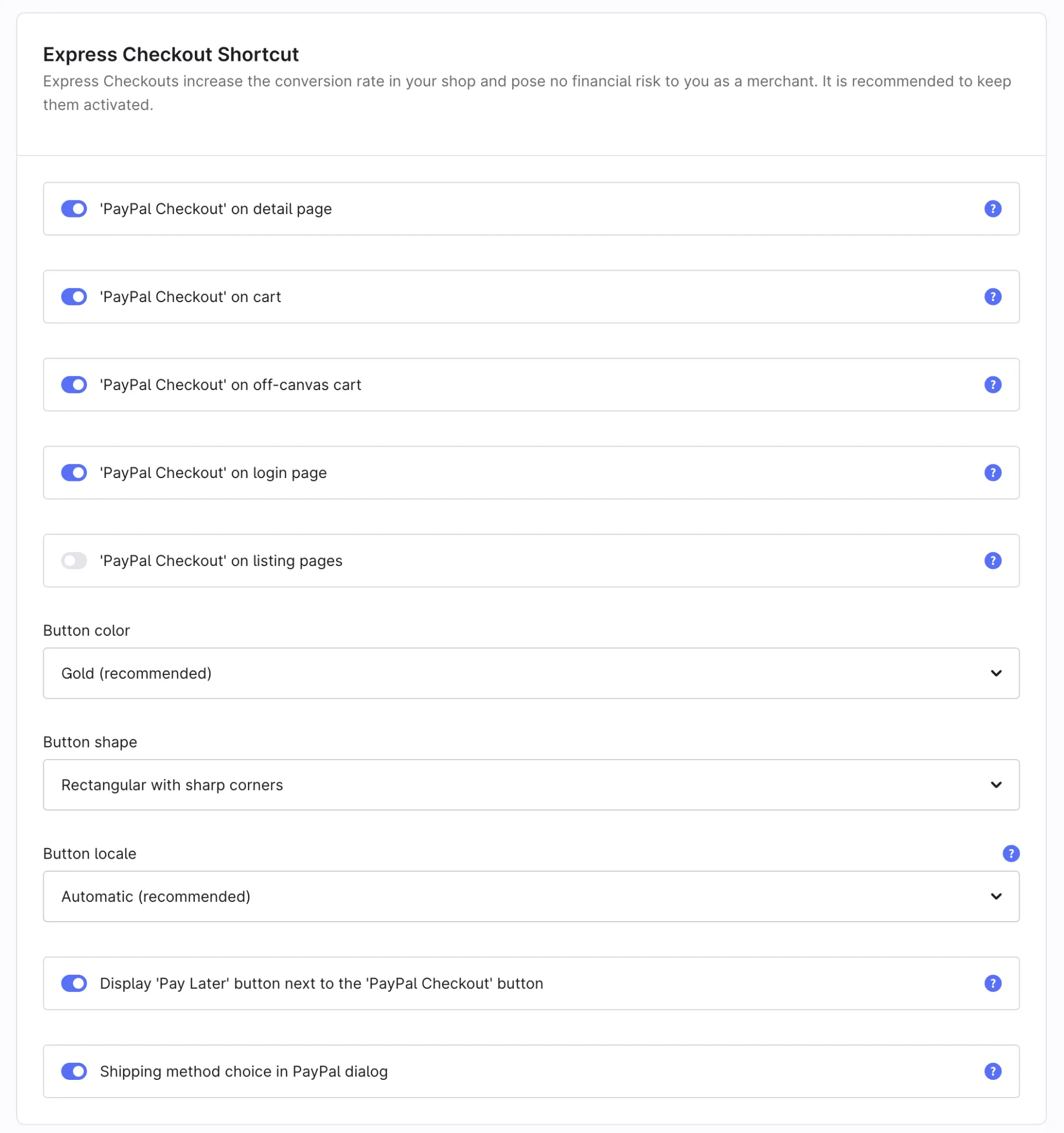 - Express Checkout: Ermöglicht Kunden den Kauf direkt von der Produktdetailseite oder aus dem Warenkorb heraus, ohne mühsame Dateneingabe.