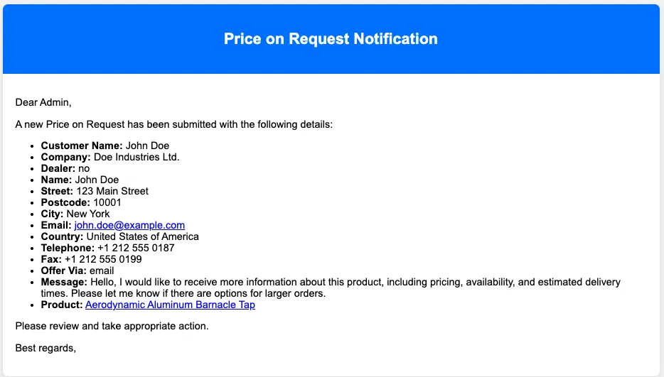 Price on Request for Products introduces an inquiry-first workflow for products that require bespoke pricing. Replace the standard price with a call-to-action button, collect structured inquiries through a configurable form, and track every lead within the Shopware administration.