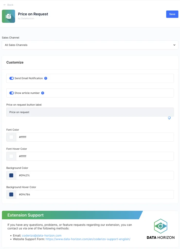 Automatic notifications, snippet-driven labels, and color controls ensure that the button and the overall workflow match your brand while keeping your sales team responsive.
